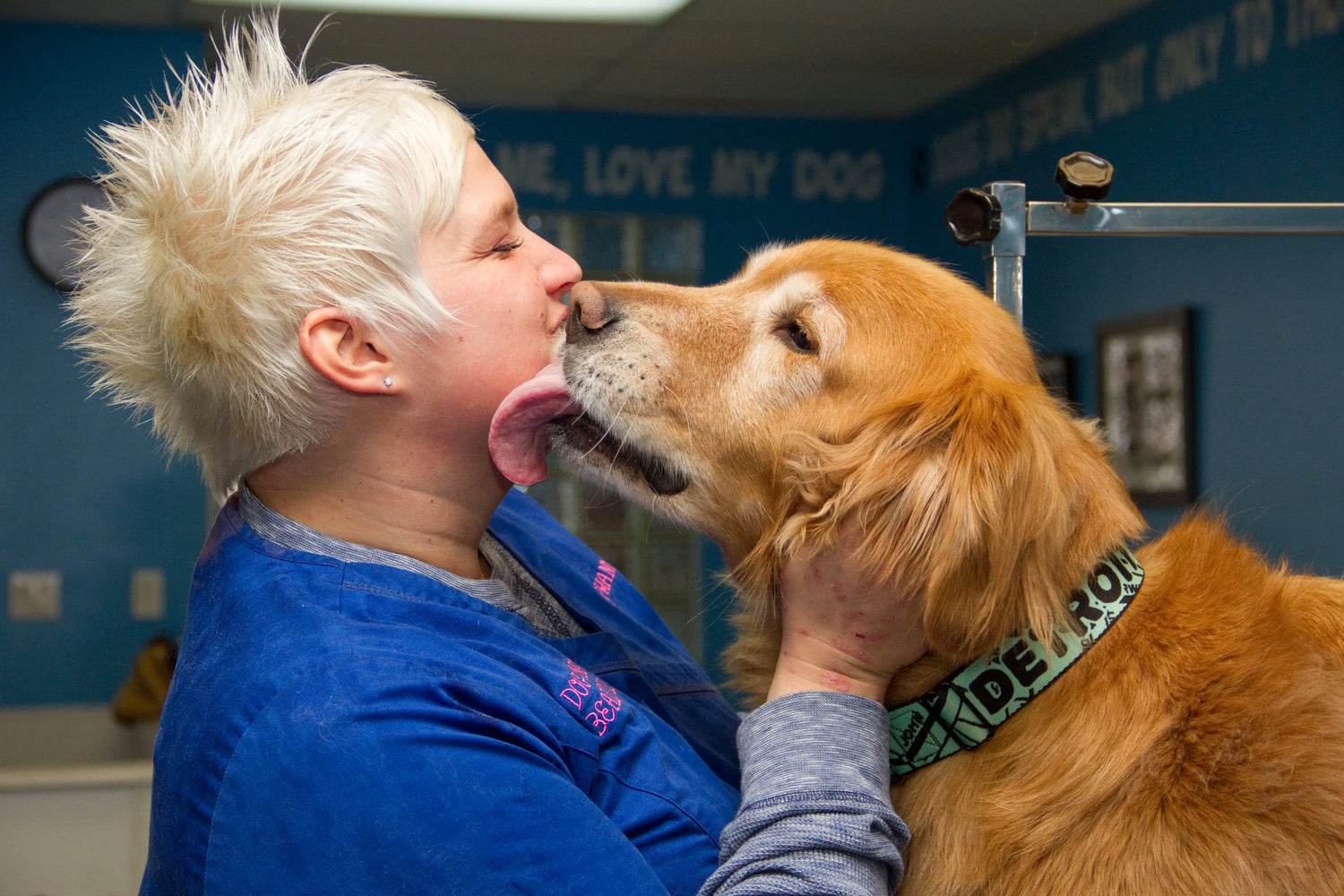 Our dog is a rescue and a bit of a nervous nelly but never shows any fear or anxiety when we take him. The staff are incredibly friendly. The cage free environment is a must for our pup. He had a very stressful day today after getting sprayed in the face by a skunk in our back yard. They fit him right in the schedule and he came back smelling and looking great. Good enough to cuddle with this evening! Thank you!